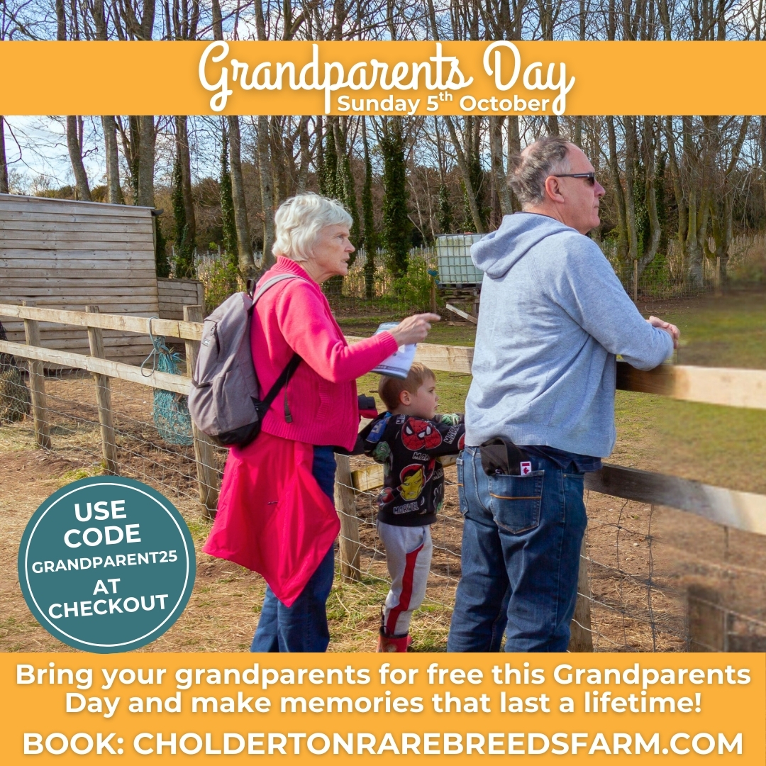 Celebrate the unsung heroes this Grandparents Day on Sunday 5th October with grandparents go FREE at Cholderton Rare Breeds Farm! Bring the whole family, enjoy quality time with the ones who spoil us with too many treats ...